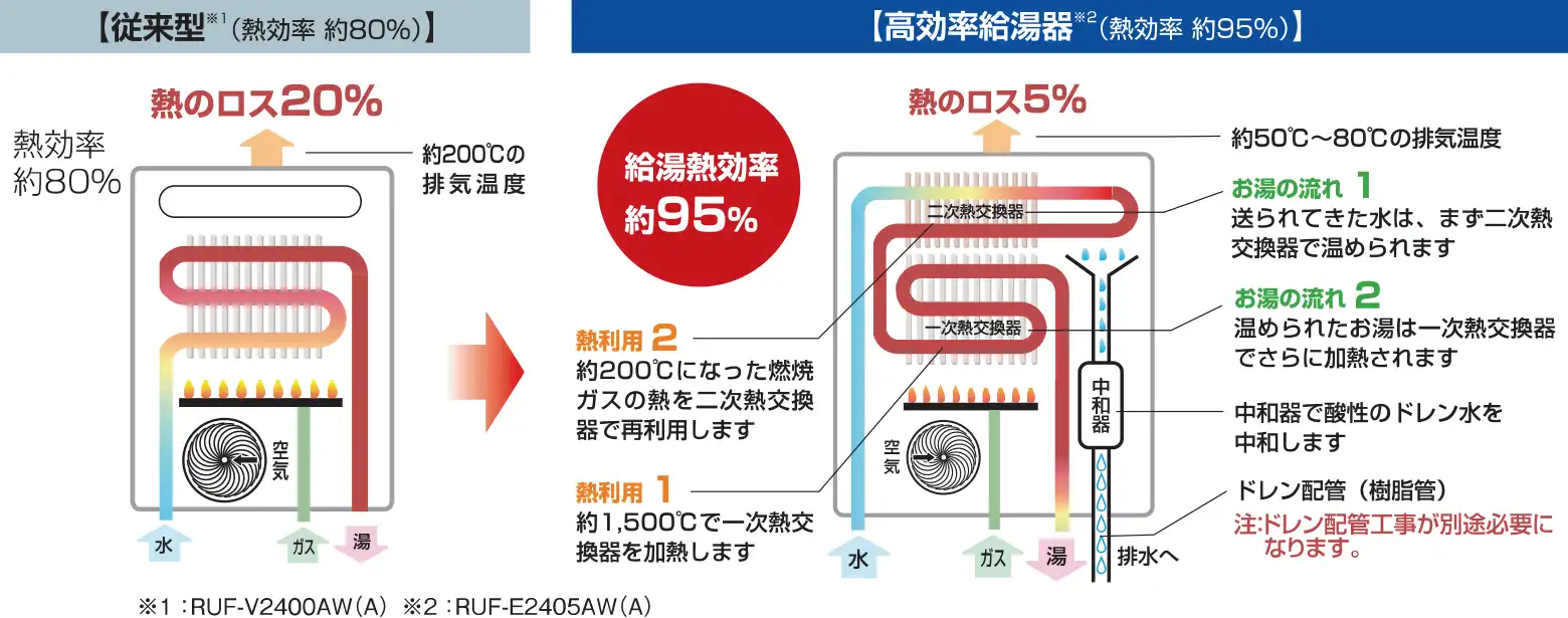 地球にも家計にもやさしい高効率ガス給湯器