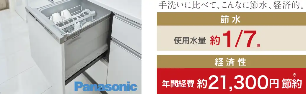 洗い物がスイッチ一つで簡単。手洗いと比較して、水も節約でき、経済的。