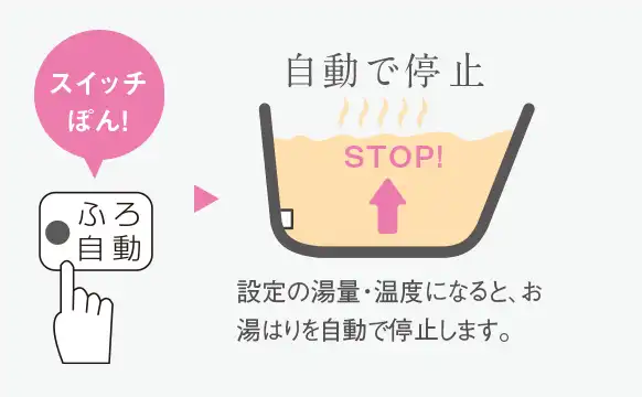 便利な自動湯張り・オートバスを採用しました。スイッチひとつでお風呂を沸かすことができます。