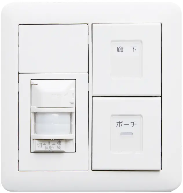 人を感知すると自動的にライトが点灯するオートライトを玄関に設置。(スイッチでオン・オフ・自動が選択可)
